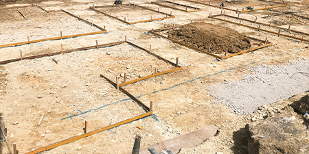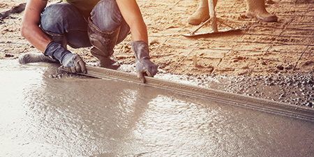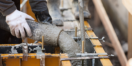 コンクリート打設とは、型枠の中に生コンクリートを流し込んでいく作業のこと。型枠の隅々にまで生コンクリートが均等に行き渡るよう、注意深く作業します。コンクリート打設が終わったら、コンクリートが固まって十分な強度が確認できたところで型枠を解体します。
